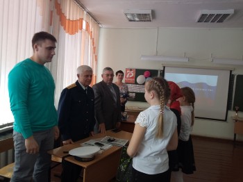 Классная встреча "Готов к защите Отечества" 12 марта в школе прошла классная встреча учащихся с председателем клуба моряков Антоновым Юрием Николаевичем и членами клуба: Паршуковым Владимиром Михайловичем и Александровым Владимиром Владимировичем. Представители школьного юнармейского отряда "Сибиряки" рассказали об истории юнармейского движения в школе. Приглашенные познакомили ребят с особенностями службы на флоте. Рассказали о трудностях и сложностях службы моряков, о дружбе и взаимовыручке моряков, о традициях, существующих на флоте. Александров Владимир Владимирович рассказал, как вместе с однополчанами принимал участие в военных операциях в Сирии, за что был отмечен медалью Министерства обороны Российской Федерации "участнику военной операции в Сирии". Ребята, с большим интересом рассматривали фотографии из личных армейских альбомов, задавали вопросы о службе. В конце мероприятия члены клуба моряков пригласили ребят на встречу в клуб.